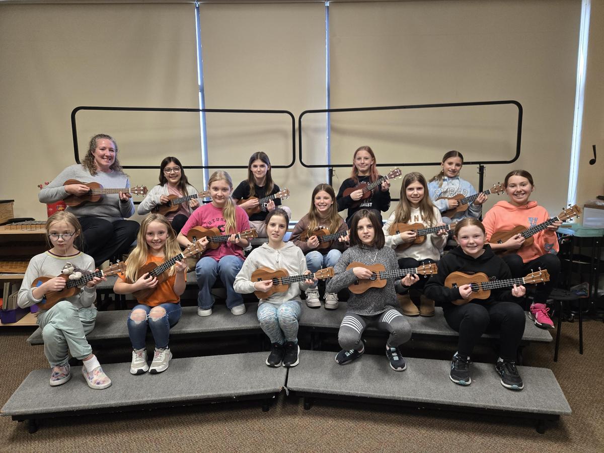 In New Prague, musical opportunity is woven into the fabric of a student’s journey from day one. While every child begins their musical path in Kindergarten, the fifth-grade year marks a major milestone as students dive into band or choir. However, at Raven Stream Elementary, the music opportunities have expanded even further. Students are now finding new ways to create music through two programs: the Pitch Perfect singing group and now in our second year, the Raven Stream Ukulele Club.